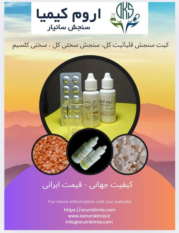 از فرمول زیر استفاده کنید: سختی کل (ppm CaCO₃) = تعداد قطرههای محلول شماره ۲ مصرفی × ۱۰ |